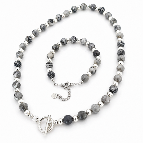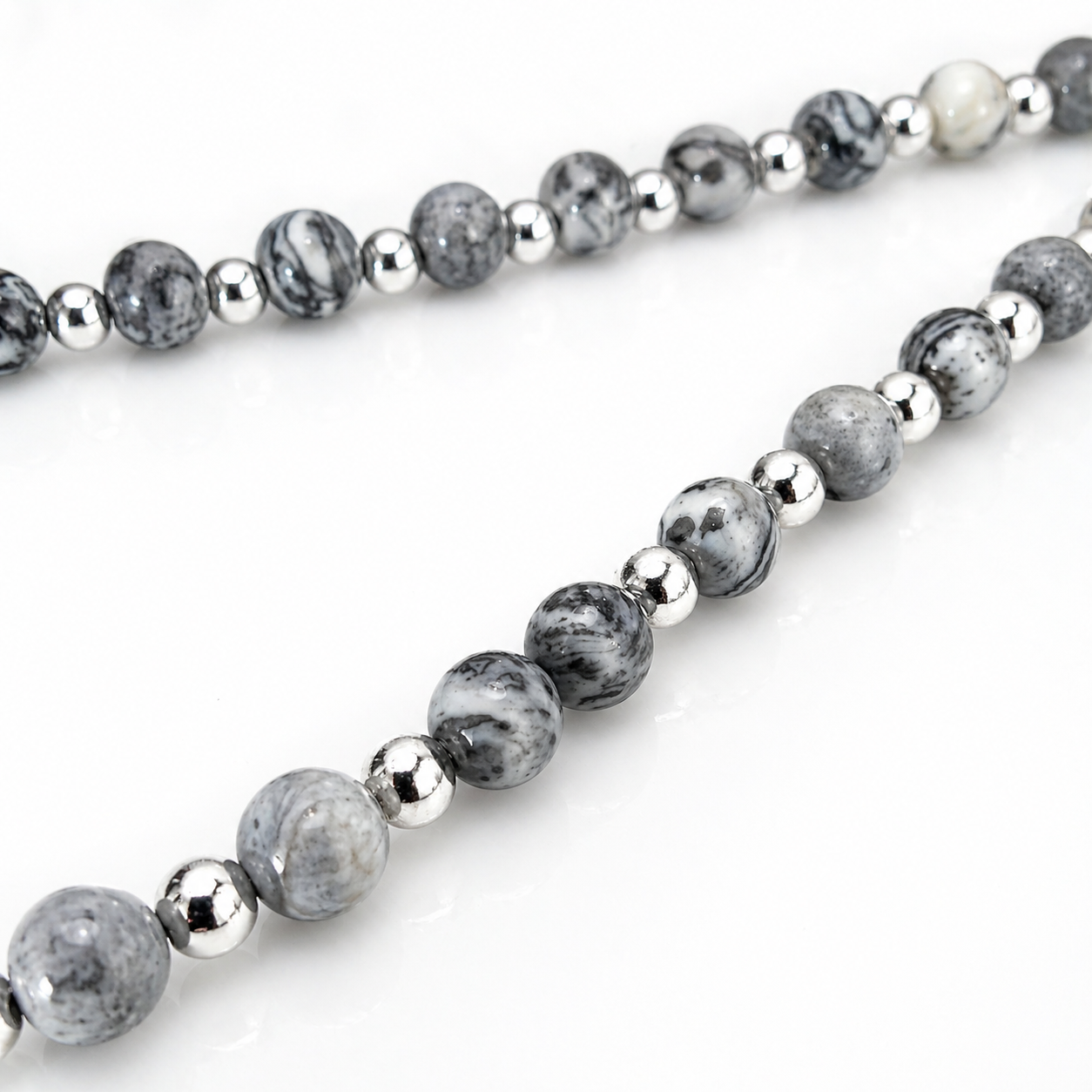 Associez élégance et harmonie avec le collier en jaspe gris aux nuances naturelles !