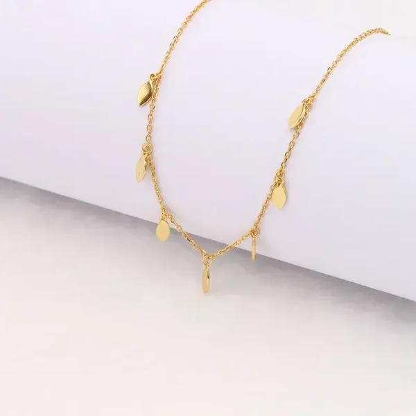 Orné de petites breloques en forme de gouttes dorées, il reflète la lumière pour apporter une touche lumineuse et élégante à votre décolté.