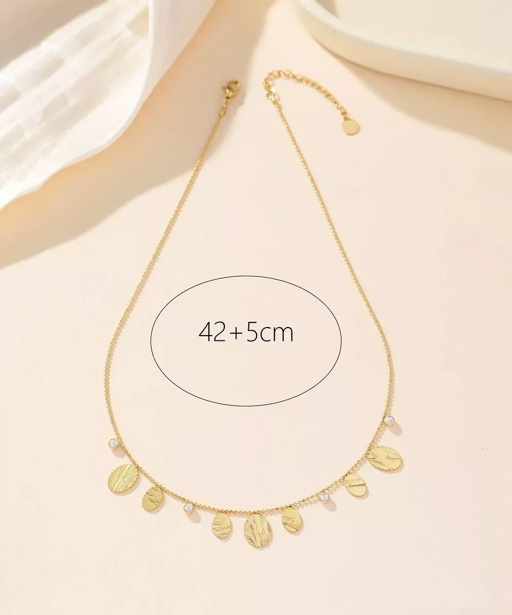Collier Bohème doré en acier inoxydable avec médaillons ovales et strass