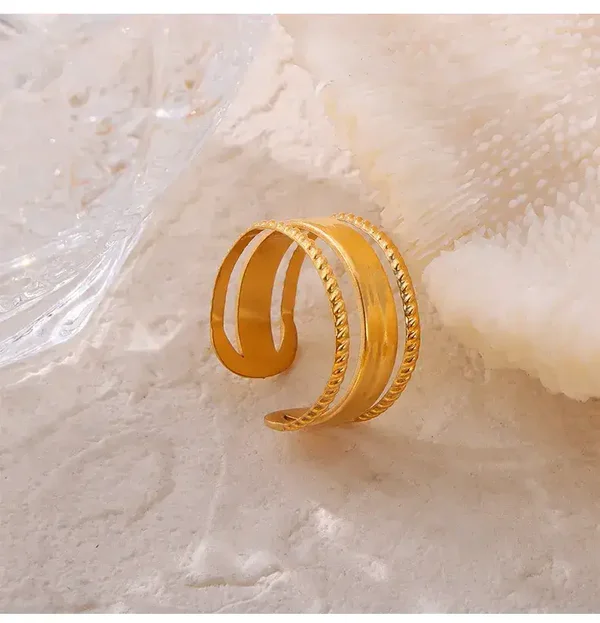 Bague dorée à trois rangs en acier inoxydable plaquée or - style bohème chic