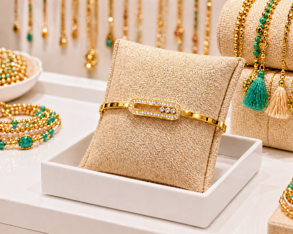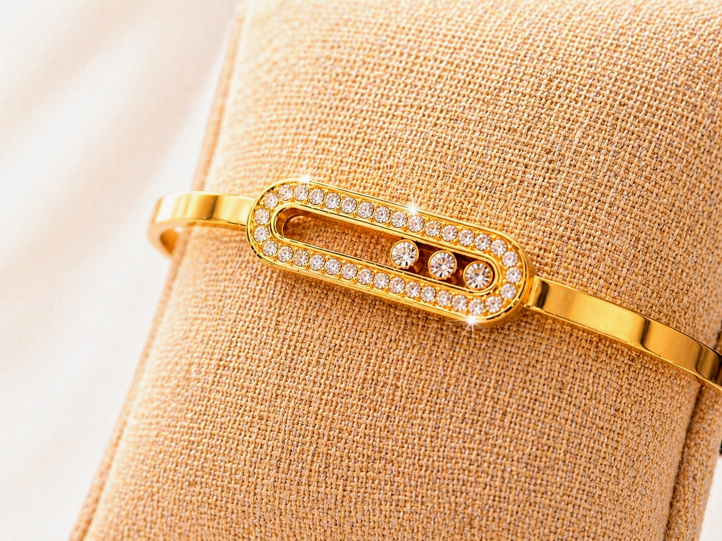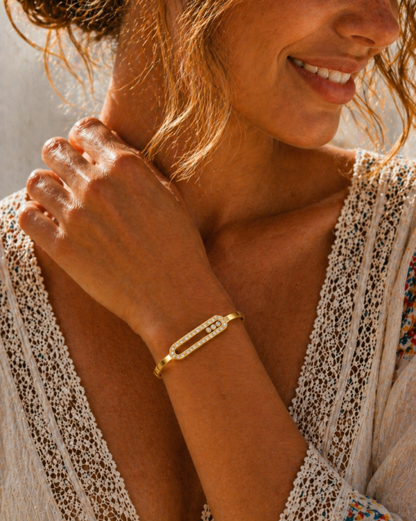 Adoptez ce jonc doré aux strass mobiles et design raffiné !