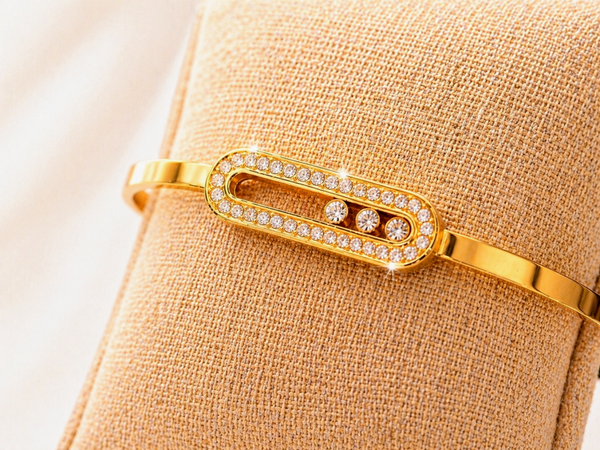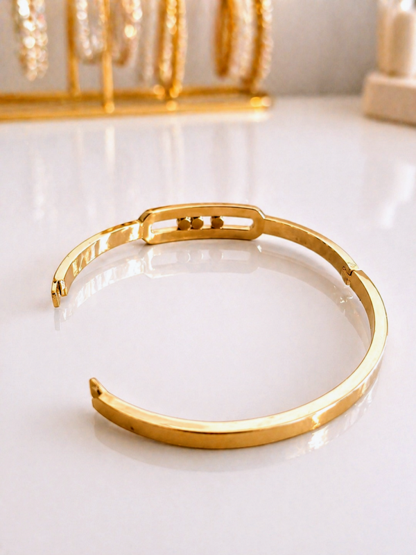Bracelet jonc acier inoxydable doré - strass mobiles
