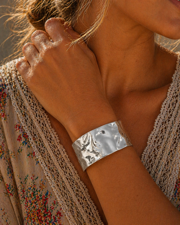 Bracelet manchette effet bosselé acier inoxydable