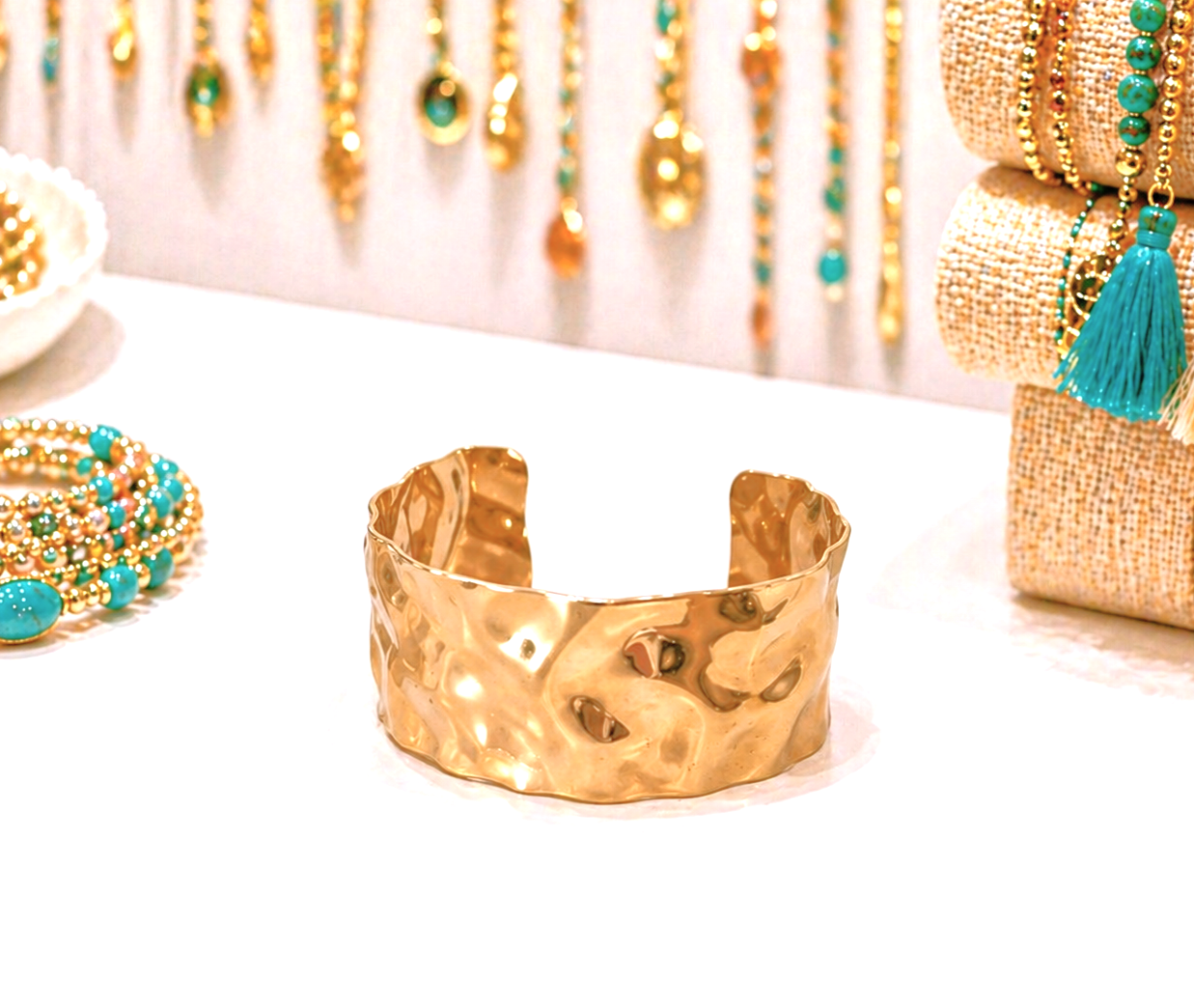 Pièce incontournable ! La manchette dorée bosselée, bohème chic et intemporelle.